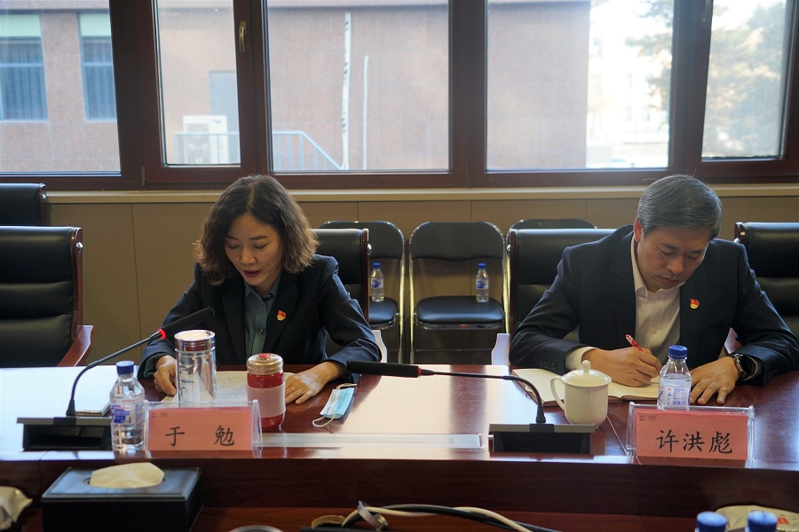 集团党支部书记、董事长于勉主持会议,市财政局机关纪委委员许洪彪同志现场指导并点评。