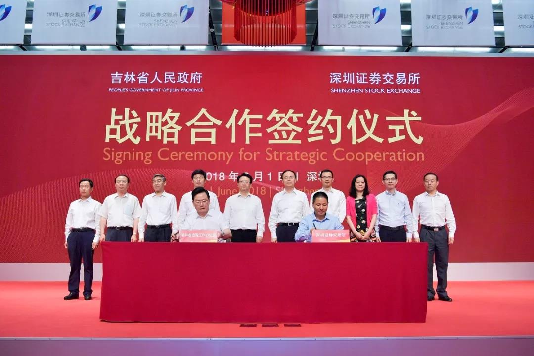 2018年6月1日,深交所与吉林省在深圳共同举办战略合作签约仪式。这是深交所强化与地方政府合作,发挥资本市场平台作用,服务地方经济转型升级、促进区域协调发展的又一重要成果。吉林省省长景俊海、副省长金育辉、长春市市长刘长龙、省政府秘书长彭永林、深交所理事长吴利军等出席签约仪式,吉林省金融办主任胡斌与深交所总经理王建军共同签署协议,吉林省、深圳市、深交所有关领导参加相关活动。